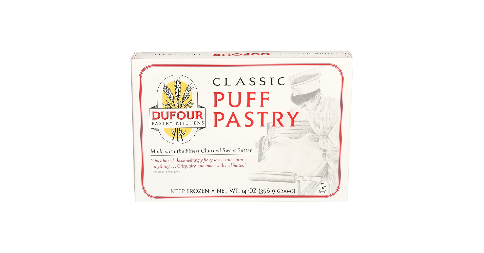 こちらのDufour Pastry Kitchen, All Butter Puff Pastryは高価ですが、よく膨らみます。バターを使用しているのでサクサク感はアメリカで試したもののなかで一番でした!